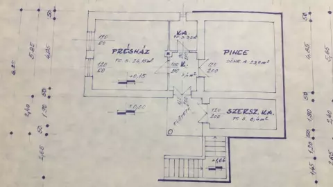 Szuterén alapterülete 55,55 m2: présház 24,15 m2, pince 23 m2, szerszámtároló 8,4 m2 +különálló tároló és wc, az épület mellett